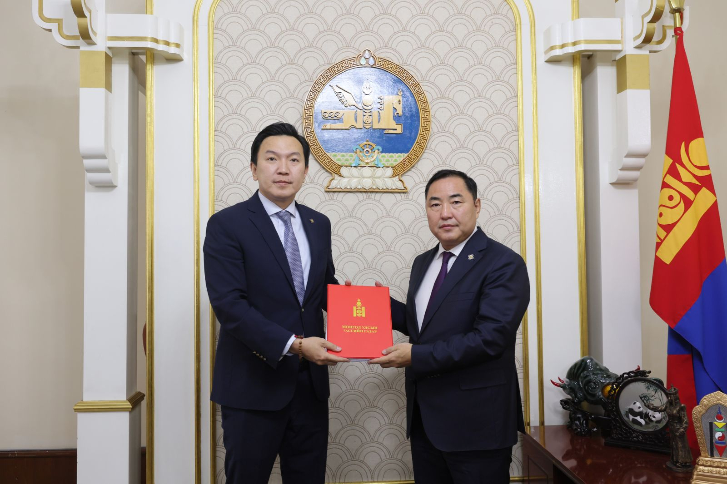 Монгол Улсын Тэргүүн шадар сайд бөгөөд Эдийн засаг, хөгжлийн сайд Н.Учрал өнөөдөр /2025.10.30/ “Монгол Улсыг 2026-2030 онд хөгжүүлэх таван жилийн үндсэн чиглэл батлах тухай” УИХ-ын тогтоолын төслийг УИХ-ын дэд дарга Б.Пүрэвдоржид өргөн мэдүүллээ.