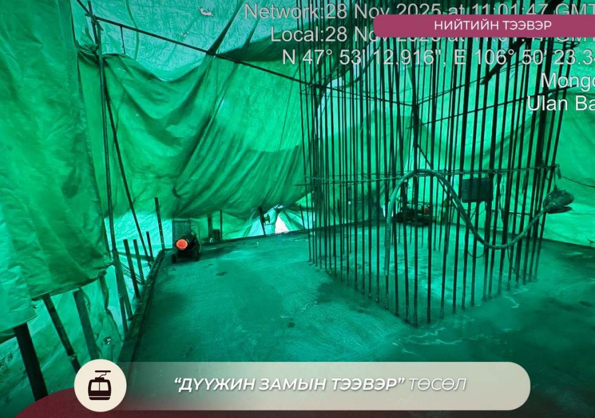 Түүнчлэн төслийн буудал болон тулгуур угсралтын ажил 42.5 хувьтай, тулгуур багануудын суурийн ажил 92 хувийн гүйцэтгэлтэй үргэлжилж байна. Буудлын барилгын каракасын бетон цутгалт 75 хувьд хүрч, хэв хашмал угсралт, арматурын зангилаа, дотор инженерийн холболтын бэлтгэлийн ажлууд зэрэгцэн хийгдэж байна. Дүүжин замын тээврийн шугамын тоноглолын суурилуулалт 2026 оны нэгдүгээр улиралд эхэлнэ.