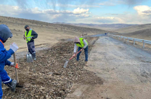 Даац хэтрүүлсний улмаас үүссэн авто замын эвдрэлийг засварлаж байна.
