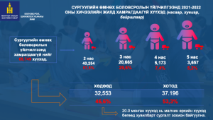Улсын хэмжээнд 2-5 насны нийт 305,278 хүүхэд байгаагийн 69,749 нь 2021-2022 оны хичээлийн жилд сургуулийн өмнөх боловсролд хамрагдаж чадаагүй байна. Нийслэлийн 57 байршилд цэцэрлэгийн хэт өндөр ачаалал үүсчээ. Иймд цэцэрлэгийн хүртээмжийг нэмэх дараах шийдлүүдийг БШУЯ санал болгож буйгаа танилцууллаа. Үүнд: