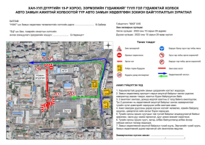 Тодруулбал, энэ сарын 5-24 хүртэл тус авто замын хөдөлгөөнийг хязгаарлан, зам барилгын ажил гүйцэтгэх юм. Тус замыг 3 байршилд хөндлөн сэтэлж борооны ус зайлуулах шугам хийх, мөн хучилт, хэвтээ тэмдэглэл, явган хүний замын ажлыг хийнэ.