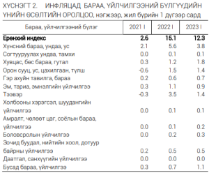 - тээврийн бүлгийн үнэ 8.1 хувиар тус тус өссөн нь голлон нөлөөлжээ.