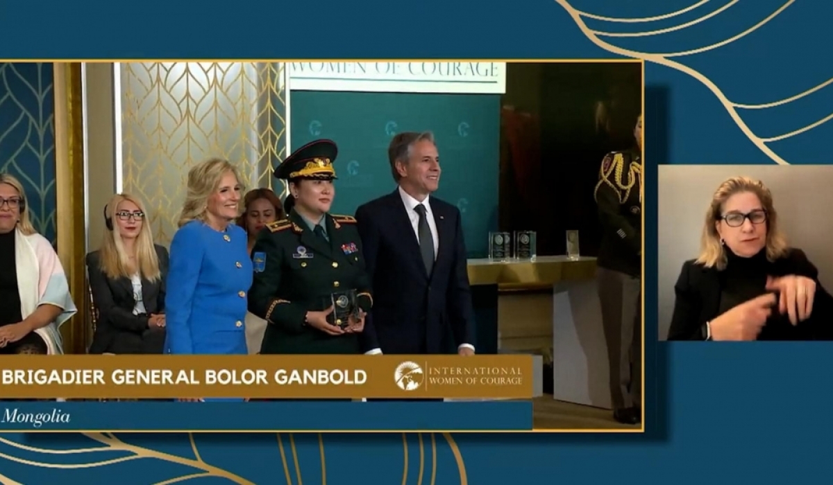 Монгол Улсын ЗХЖШ-ын Сургалт, бэлтгэлийн газрын дарга бригадын генерал Г.Болор АНУ-ын Цагаан ордонд жил бүр олгодог Олон улсын эмэгтэйчүүдийн эр зоригийн шагналыг гардан авлаа.