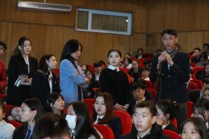 Сурагчид “Алсын хараа-2050” Монгол Улсын урт хугацааны хөгжлийн бодлогод байгаль орчин, ногоон хөгжил, аж үйлдвэржилт, боловсрол, эрүүл мэнд, хүний хөгжлийн асуудал хэрхэн туссан болон Ерөнхий сайдын нэрэмжит тэтгэлгийн талаар тодрууллаа. “Манай улс авлигатай тэмцэх нь чухал гэхдээ урт хугацаандаа цөлжилтөд санаа зовж байна”, “Соёл урлагийн салбар уналтад орж, мэргэжлийн уран бүтээлчид ажлаасаа гарч байна”, “Дэлхийн геополитик хурдацтай өөрчлөгдөж буй энэ цаг үед манай улс батлан хамгаалах, зэвсэгт хүчний хувьд ямар бодлого баримталж байгаа вэ”, “ЭЕШ-ын оноог ямар аргачлалаар тооцдог вэ”, “Өргөн хэрэглээний барааны үнийн өсөлт хүн бүрд хүндээр тусаж байна” зэрэг асуултдаа тэд Ерөнхий сайдаас хариулт авлаа.
