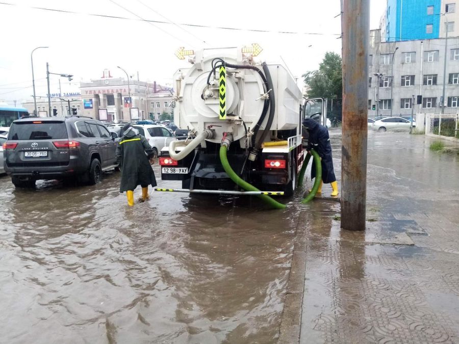 Баянгол дүүргийн 3 дугаар хороо буюу Төмөр замын вокзалын тойрог орчмын авто машин зорчих хэсэг, 20 дугаар хорооны нутаг дэвсгэр Саппоро орчмын байршилд очиж зам, талбайд тогтсон нийт 120 тонн усыг соруулаад буй. Түүнчлэн Баянбүрдийн тойрог, Гэсэр сүмийн уулзвар, “Континенталь” зочид буудлын урд зам, Нарантуул захын урд замд тогтсон усыг соруулжээ.