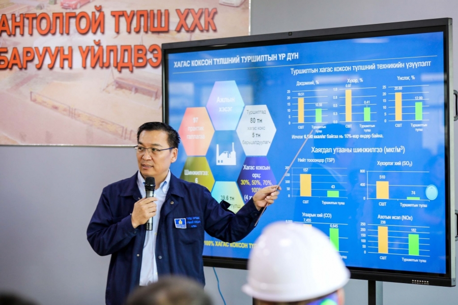 Тэгвэл өчигдөр “Таван Толгой Түлш” ХХК баруун бүсийн үйлдвэрт коксжуулсан түлшний туршилтыг хийж үзүүллээ. Хагас кокосжсон нүүрс нь сайжруулсан шахмал түлшээс илч ихтэйгээс гадна гарах тортог нь хоёр дахин бага ажээ. Энэ талаар “Таван Толгой Түлш” ХХК IV үйлдвэрийн дарга, Монгол Улсын зөвлөх инженер Ж.Батбилэг “Хагас кокс гэдэг нь ахуйн зориулалттай дурын нүүрсийг боловсруулалтад оруулж утаа багатай түлш гаргаж авахыг хэлнэ. Тиймээс бид дэлхий нийтийн жишгээр хагас коксжуулах нүүрсний үйлдвэр барьж ашиглах гэж байна. Би үйлдвэрийн ажлын ерөнхий инженерээр ажиллаж байна. Багануурын таван кг нүүрсээр галлахад ойролцоогоор таван цаг асна. Мидлинг буюу сайжруулсан түлш нь 7-8 цаг буюу хоёр дахин удаан асдаг. Хагас кокс бол илчлэг өндөртэй. Шатах хугацаа нь мидлингтэй ижил байдаг. Тиймээс үйлдвэр ашиглалтад орсноор бид Багануурын нүүрсийг хагас коксжуулан ашиглах боломжтой болно. Ойрын хоёр жилд урд хөршөөс коксжсон нүүрс импортолж хэрэглэнэ. Хоёр жилийн дараа манай коксжсон нүүрсний үйлдвэр бүрэн ашиглалтад орно. Тодруулбал, коксжсон нүүрсний үйлдвэрийн ТЭЗҮ-г энэ сард батлана. Бүтээн байгуулалтын ажил энэ жил эхэлнэ. Дэлхий нийтээр агаарын бохирдолыг бууруулахад хагас коксжсон нүүрс хэрэглэдэг. Мидлингээр хийсэн түлшнээс коксжсон нүүрс нь хоёр дахин бага тортог гаргана” гэв.
